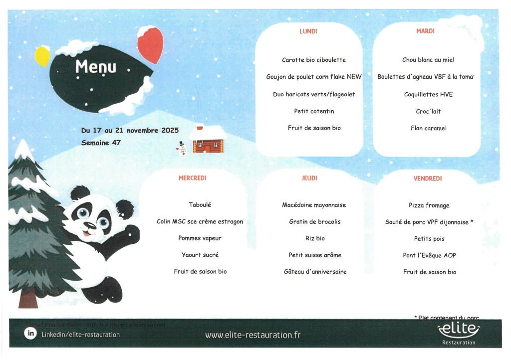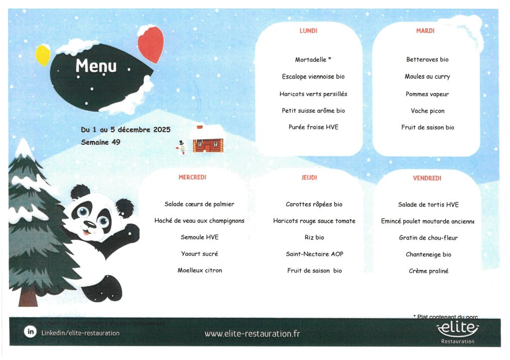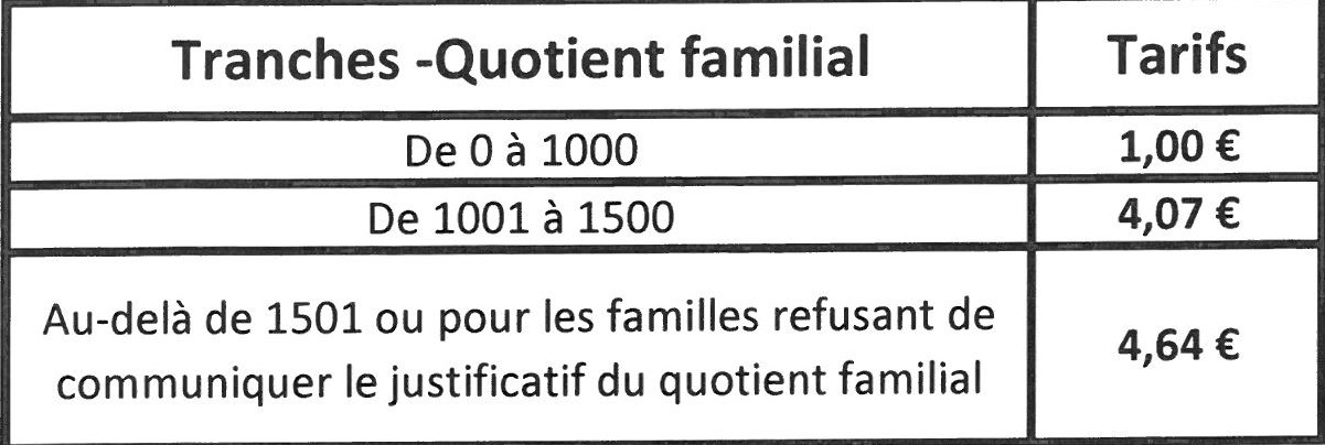 Prix du repas enfant au 1er septembre 2025 suivant la délibération